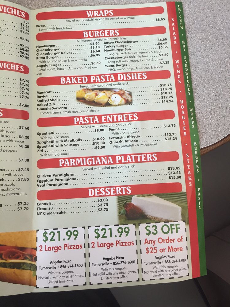 Angelo's Pizza Turnersville Menu (Update 2025)